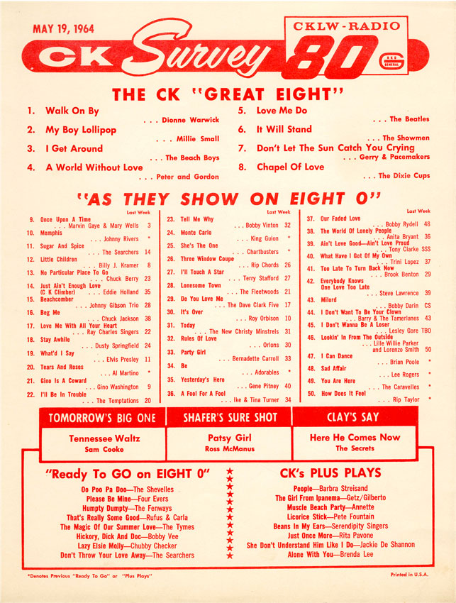 PRE-1967 CKLW Charts (Back To Charts HOME)