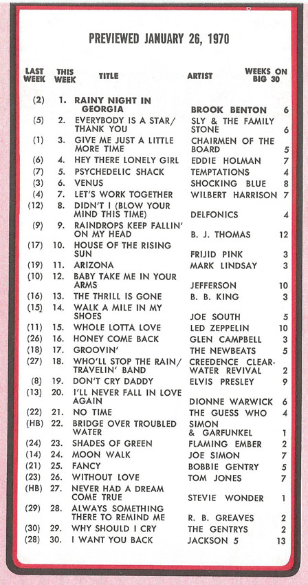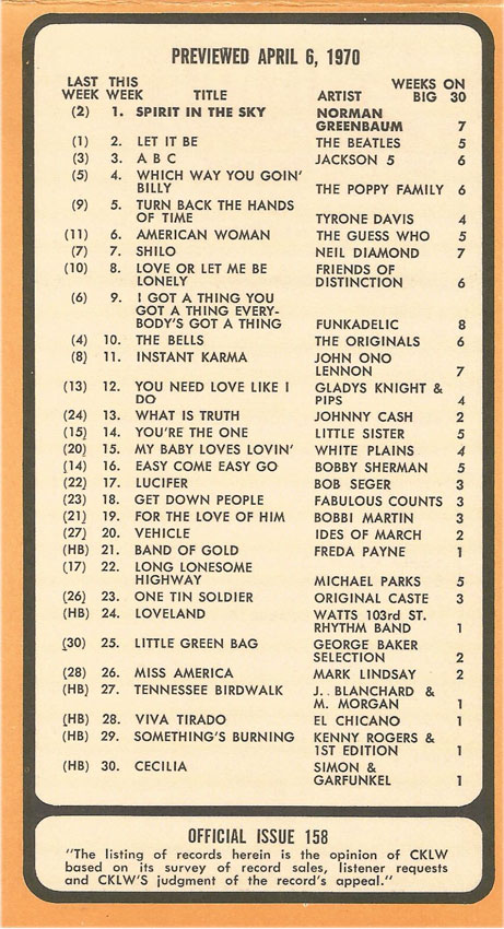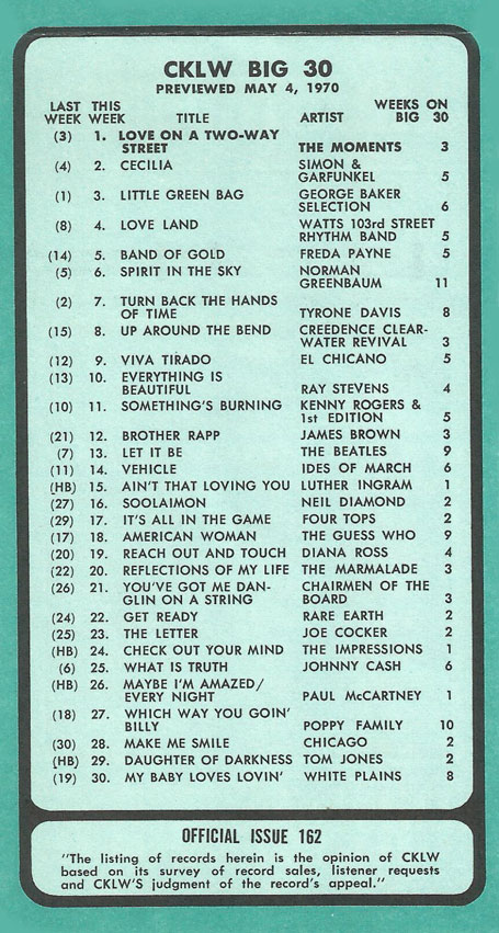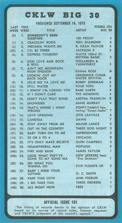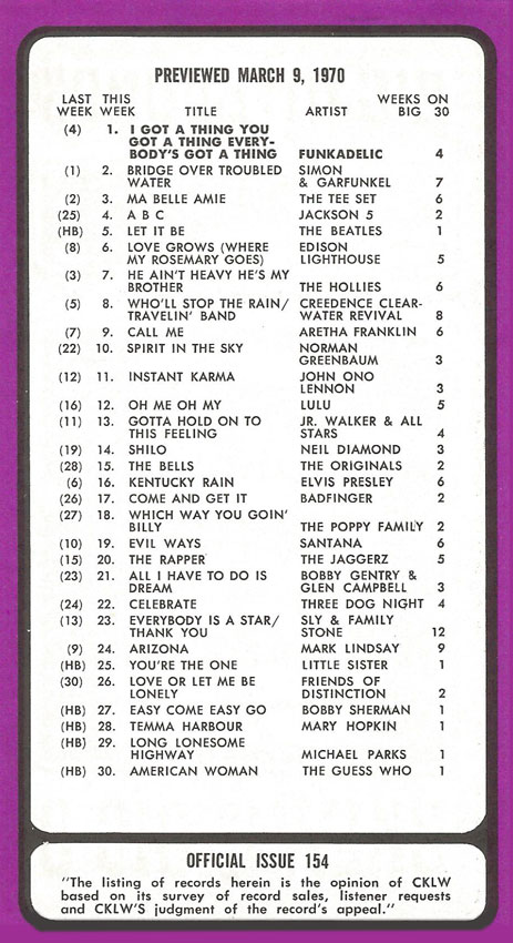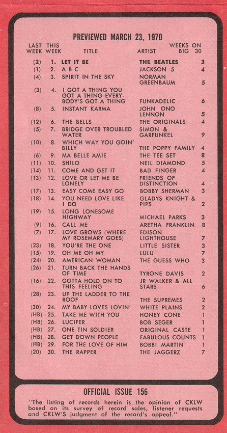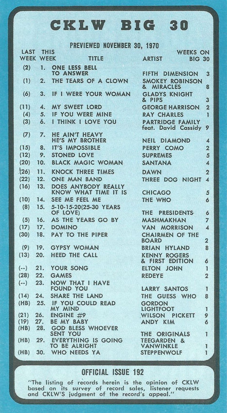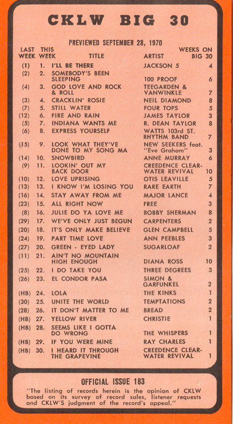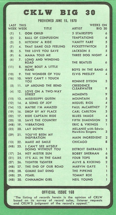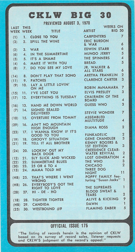 The Motor City Big 30 Chart is an important historical document in the Drake Radio BOSS Format. Every week from 1967 through the late 70's the weekly CKLW Big 30 chart was released and gathered up by music fans everywhere in The Motor City at local record stores. Collectors still covet original copies and many are still traded and sold on ebay and the like. Here's our collection - we'll add to it as we get more. Check in on the Facebook group for new posts daily or photos and audio.