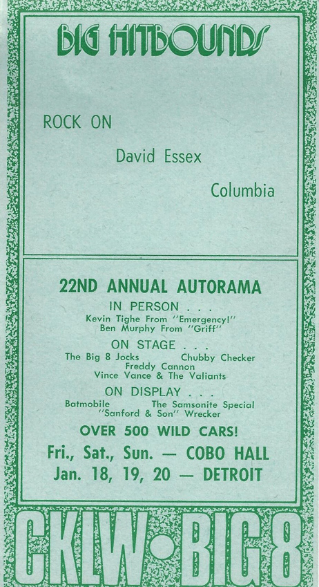 The Motor City Big 30 Chart is an important historical document in the Drake Radio BOSS Format. Every week from 1967 through the late 70's the weekly CKLW Big 30 chart was released and gathered up by music fans everywhere in The Motor City at local record stores. Collectors still covet original copies and many are still traded and sold on ebay and the like. Here's our collection - we'll add to it as we get more. Check in on the Facebook group for new posts daily or photos and audio.