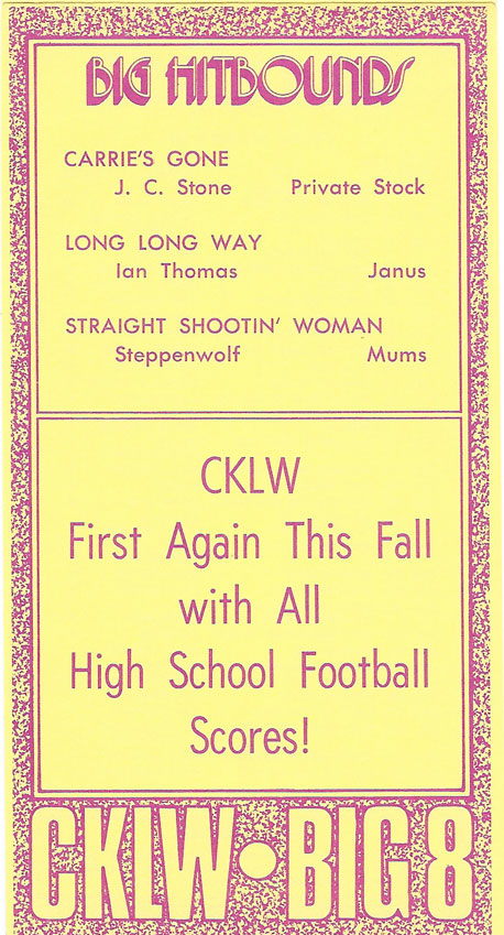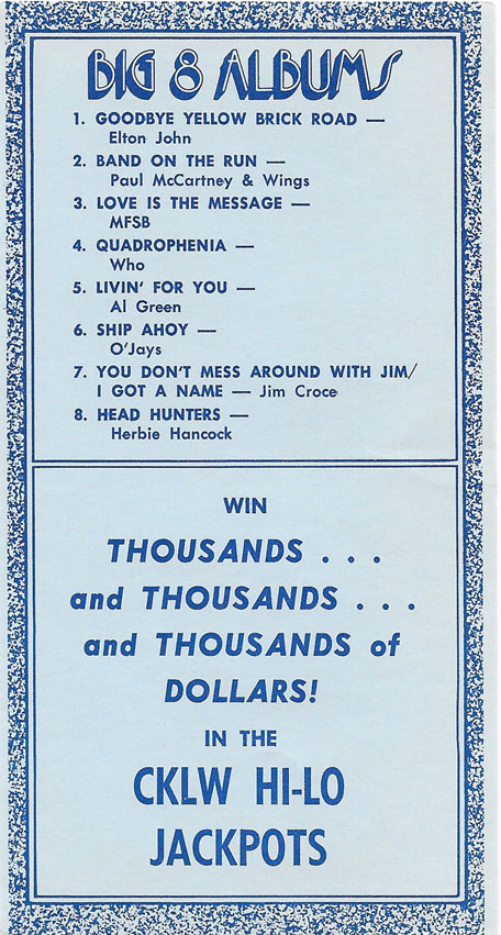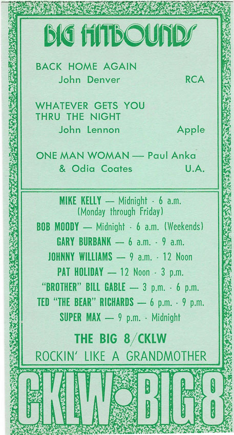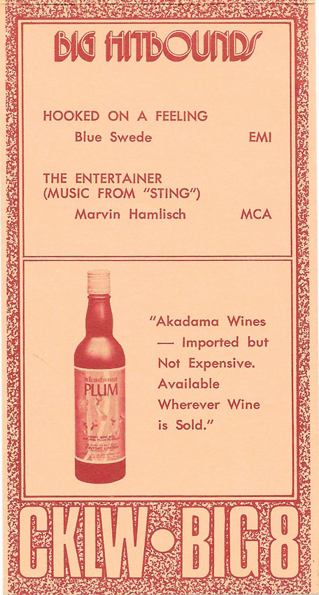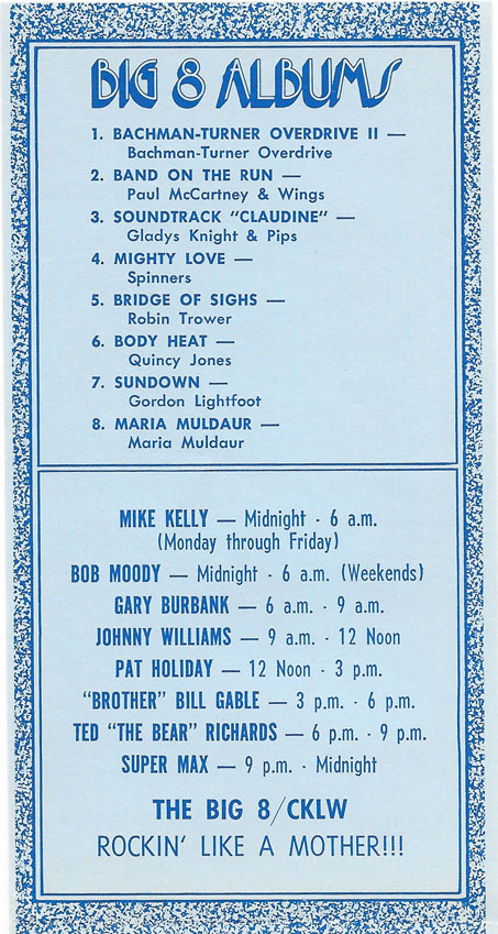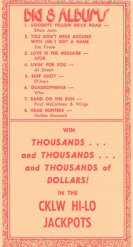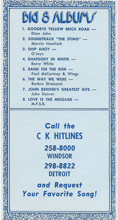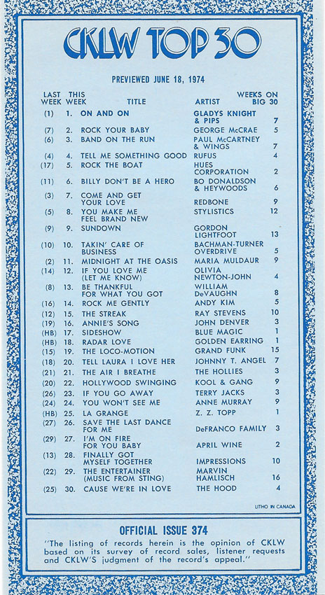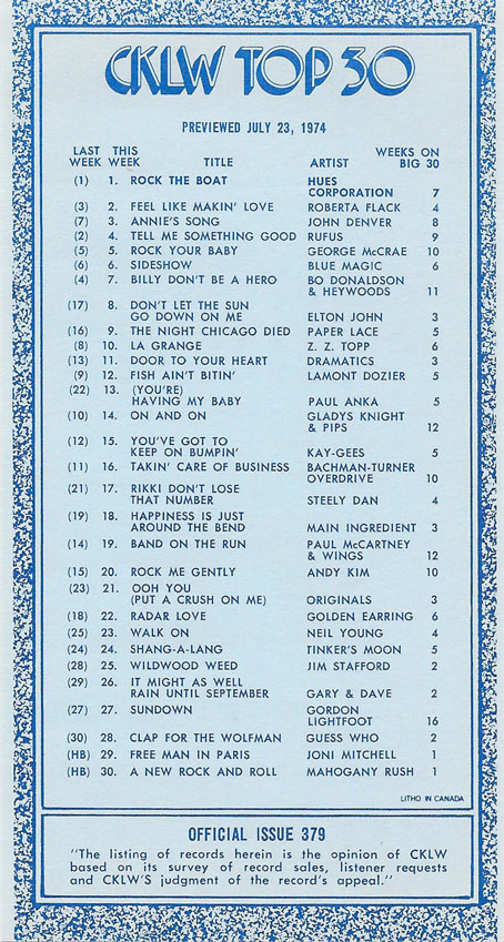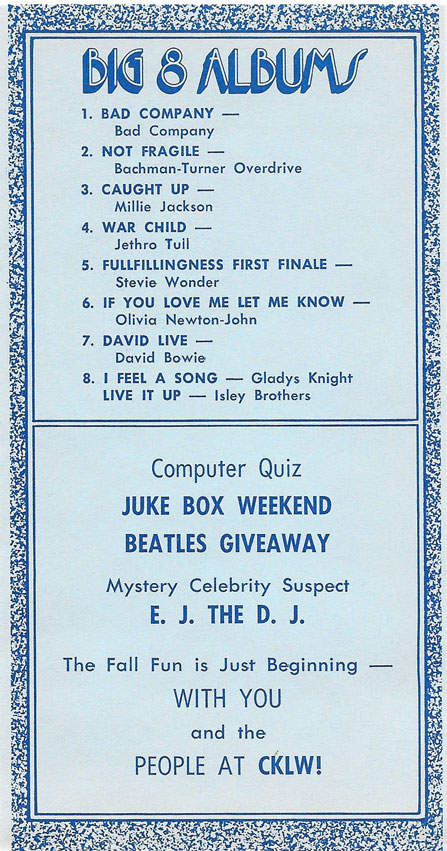 1974 CKLW Charts (Back To Charts HOME)