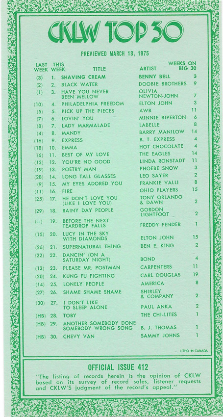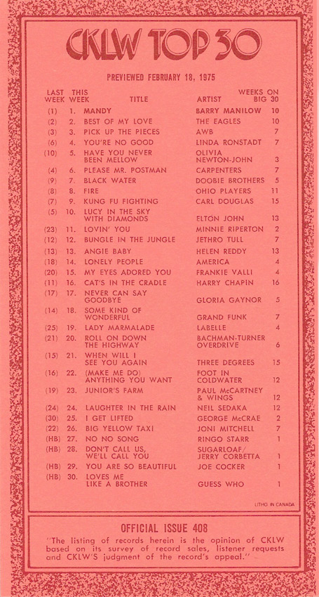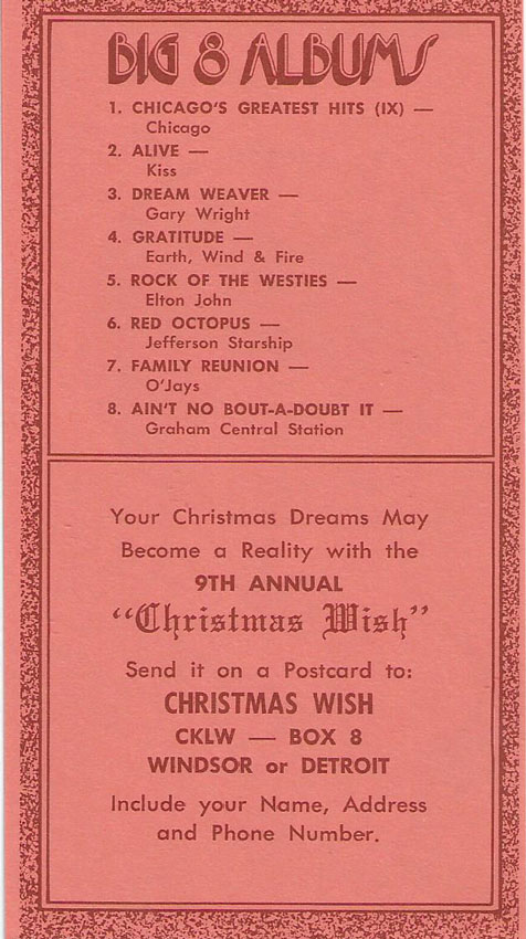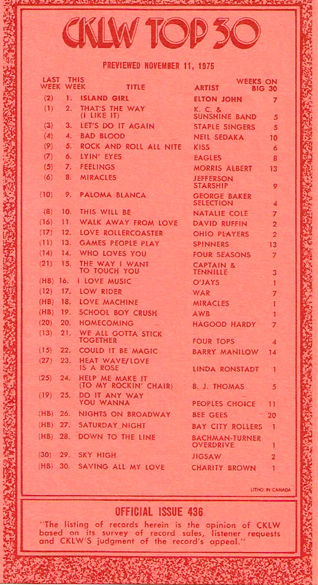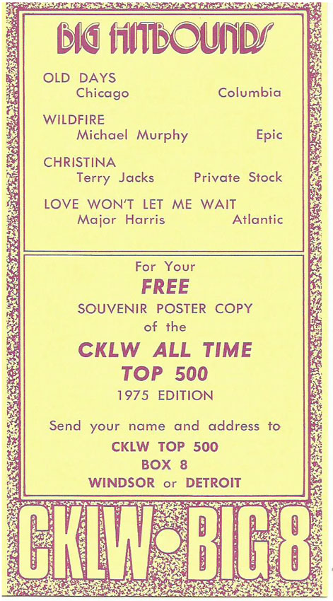 The Motor City Big 30 Chart is an important historical document in the Drake Radio BOSS Format. Every week from 1967 through the late 70's the weekly CKLW Big 30 chart was released and gathered up by music fans everywhere in The Motor City at local record stores. Collectors still covet original copies and many are still traded and sold on ebay and the like. Here's our collection - we'll add to it as we get more. Check in on the Facebook group for new posts daily or photos and audio.