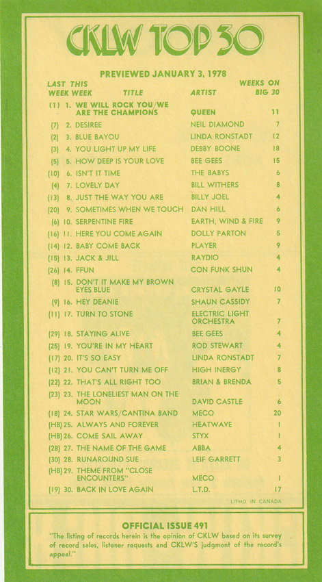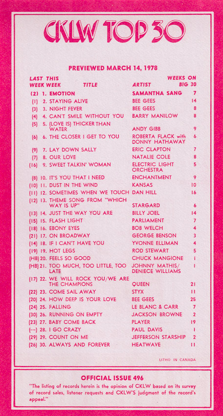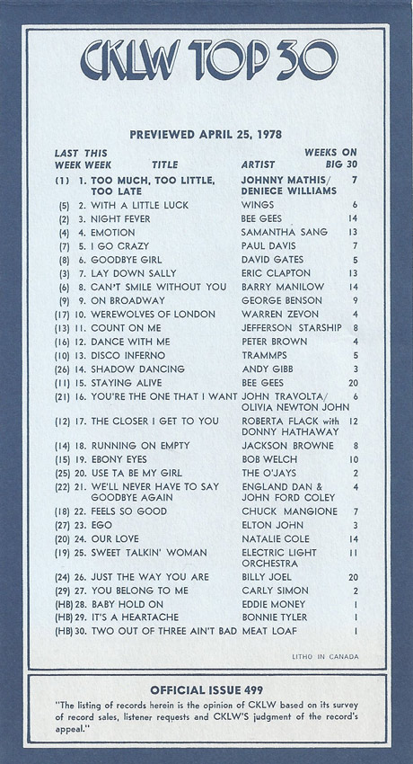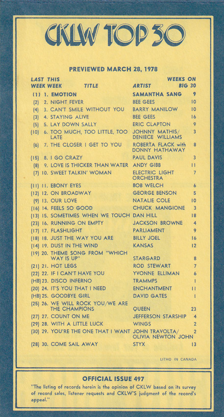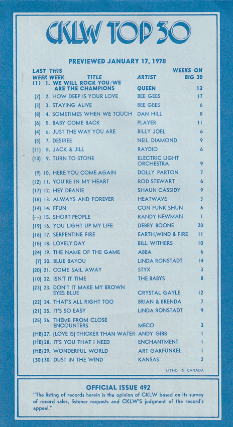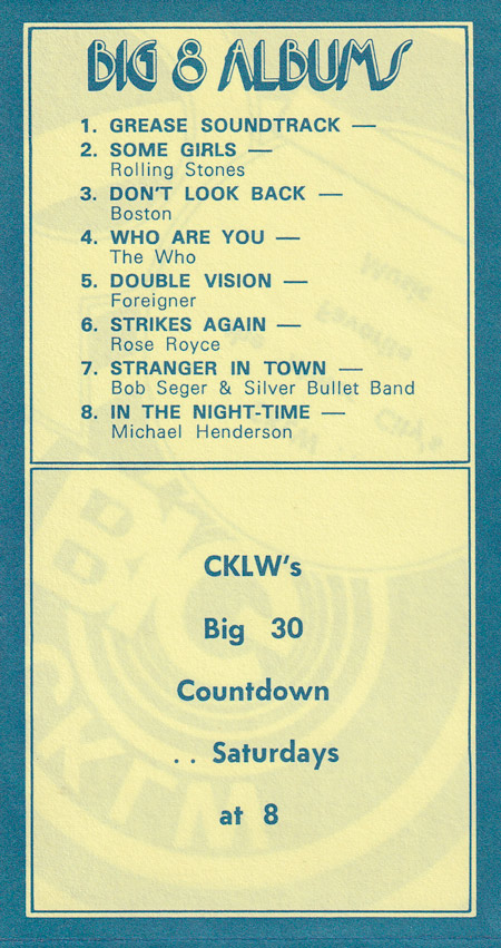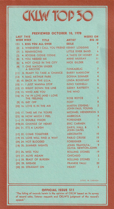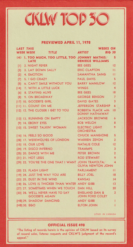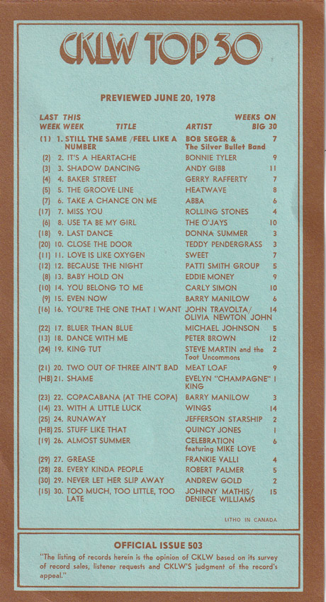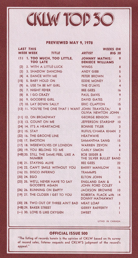 The Motor City Big 30 Chart is an important historical document in the Drake Radio BOSS Format. Every week from 1967 through the late 70's the weekly CKLW Big 30 chart was released and gathered up by music fans everywhere in The Motor City at local record stores. Collectors still covet original copies and many are still traded and sold on ebay and the like. Here's our collection - we'll add to it as we get more. Check in on the Facebook group for new posts daily or photos and audio. Thanks to our many chart contributors: Tom Howard, Jim Feliciano, David Kelly, Larry Good, Ray Tessier, John Strick and Tim Cornett.